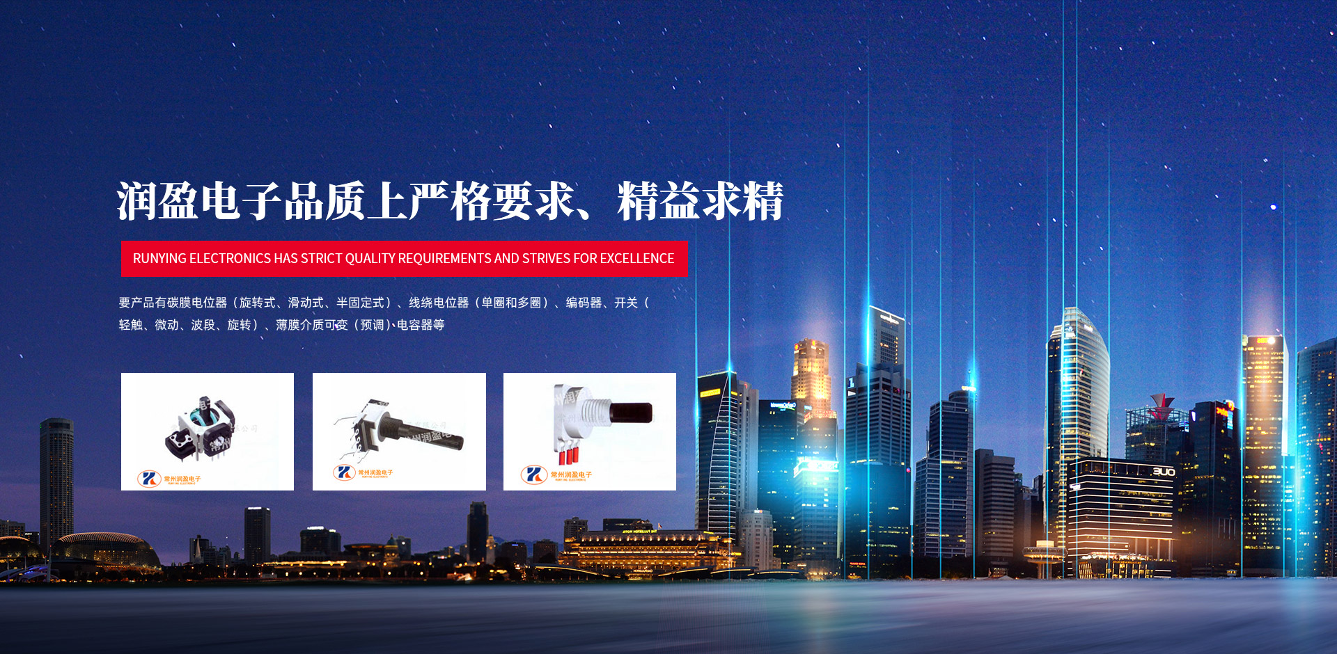 常州潤盈電子有限公司成立以來,從事編碼器、電位器、電子開關(guān)的研發(fā)和制造。公司總部設立在江蘇省常州市禮嘉鎮(zhèn)。常州潤盈電子有限公司擁有完整、科學的質(zhì)量管理體系,采用先進的加工設備、精密的檢測儀器、高能的組裝生產(chǎn)線,在品質(zhì)上嚴格要求、精益求精,在團隊管理上以人為本、精細管理,以此來確保本公司為客戶提供的優(yōu)良產(chǎn)品和服務。隨著公司業(yè)務的國際化,公司產(chǎn)品全部達到“ROHS”指令要求。公司現(xiàn)在主要產(chǎn)品有碳膜電位器(旋轉(zhuǎn)式、滑動式、半固定式)、線繞電位器(單圈和多圈)、編碼器、開關(guān)(輕觸、微動、波段、旋轉(zhuǎn))、薄膜介質(zhì)可變(預調(diào))電容器等。我們始終堅持“效率成就品牌,誠心鑄就未來”的宗旨。不斷創(chuàng)新是企業(yè)得以生存的動力,潤盈電子期待與您的合作!